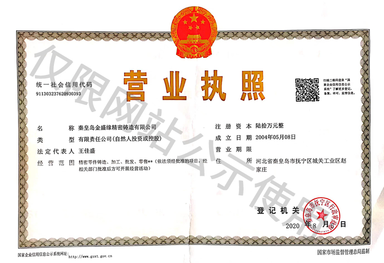 秦皇島金盛緣精密鑄造有限公司是ISO9001:2000認(rèn)證企業(yè)。專業(yè)生產(chǎn)各型碳鋼,低合金鋼,不銹鋼以及銅,鋁等有色金屬精密鑄件。公司位于秦皇島市撫寧縣城關(guān)工業(yè)開(kāi)發(fā)區(qū),西接京,津,唐東臨著名旅游避暑勝地北戴河,交通便利。